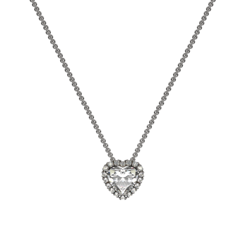 PG-20HV00117W-9kt, Halo Pendant, Heart Shape Diamond