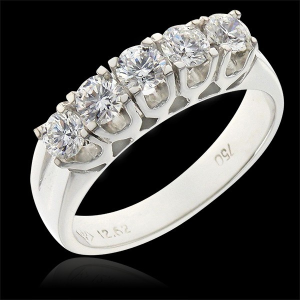 Ring 18Kt Wg - 5-Diam.Ring & Diam.Br. FG/VS 0,15x5:0.74CT