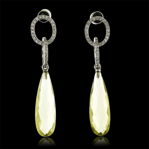 Earrings 18kt Yg,Lemon Quartz 15,06ct & Diam.Br. HI/VS2-Si1 0,005ct x 68d t.w: 0,34ct & Lemon Quartz 2pcs 15,06C