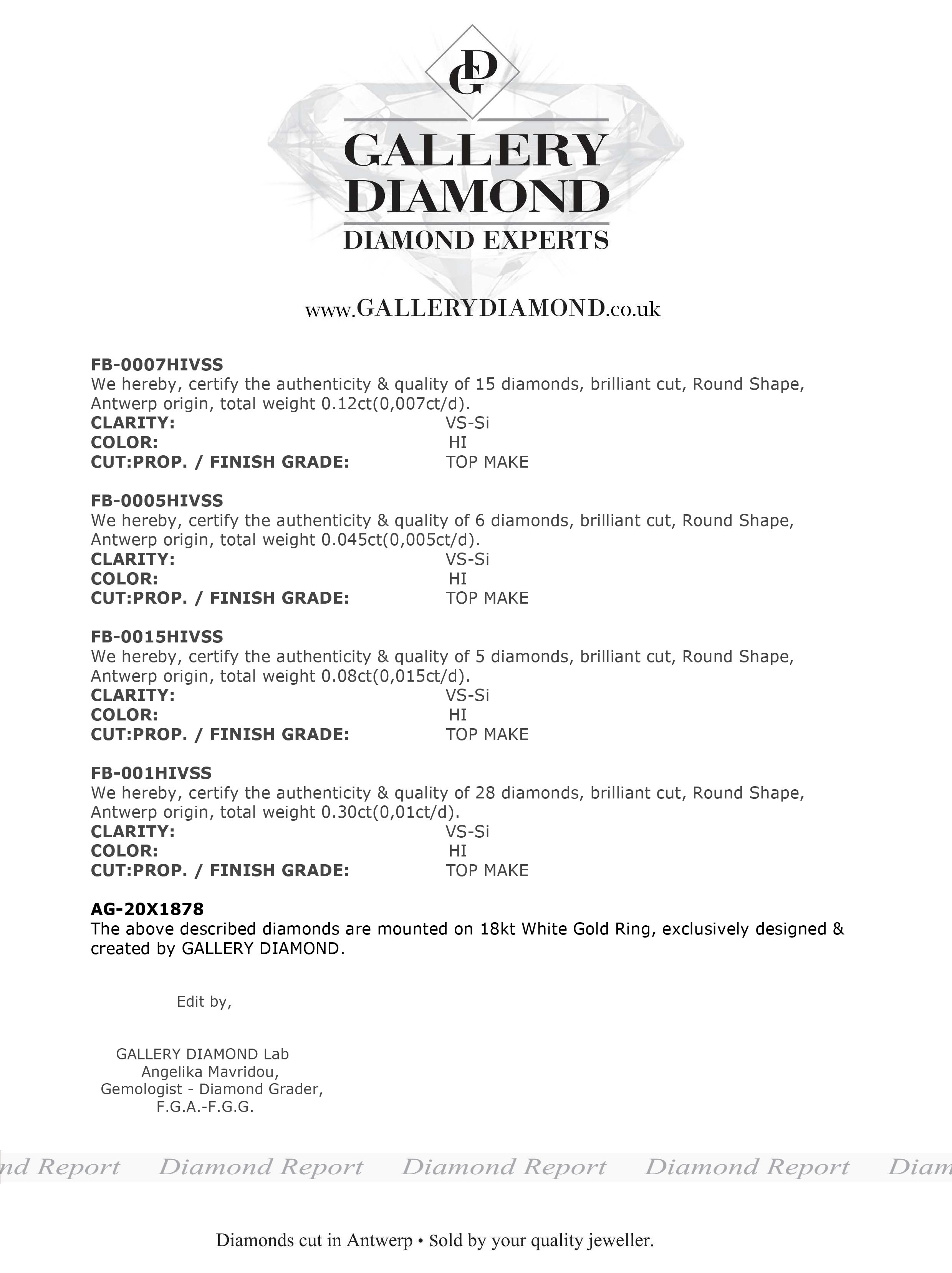 Ring 18Kt Wg,Diam.Br.HI/VS-Si, 0,007ct x 15d, 0,005ct x 6d, 0,01ct x 28d, 0,015ct x 5d: 0,54CT