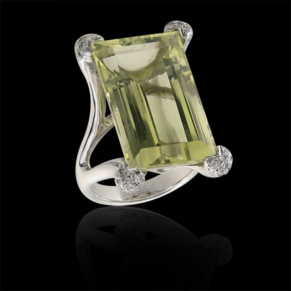 Ring 18kt Wg,Lemon Quartz 25x15mm 31,20ct & Diam.Br.HI./VS-Si 0,007ct x 41d: 0,34ct