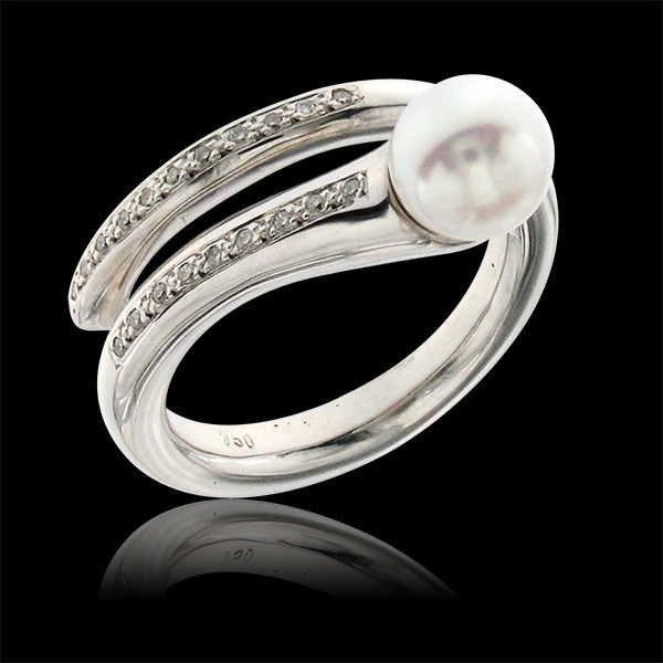 Ring 18kt Wg,Akoya Prl 7-7 1/2mm & Diam.Br.GH,0.005ct x20d:0,08ct