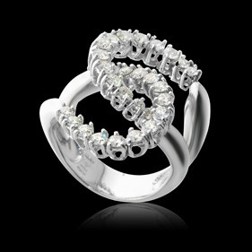 Ring 18kt Wg,Diam.Br.H/VS 0.08ct x 10d: 0,825ct & HI/VS-Si 0,08ct x 10d:0,825ct, 0.05ct x 8d: 0,42ct, t.w.: 2,07ct