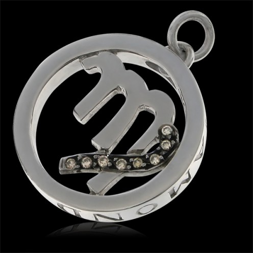 Pendant 950 Silver & Diam. Br.Brown 0.01ct x 8d: 0,08ct "Virgo" Horoscope Collection
