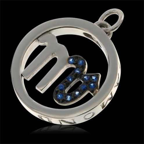 Pendant 925 Silver White Gold Plt & Blue Sapphires 0,01ct x 12s: 0,15ct "Scorpio" Horoscope Collection