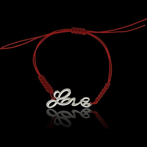 Bracelet Silver 950,WgPt,Naylon Bracelet Red,Lucky Jewel 2016, "LOVE"