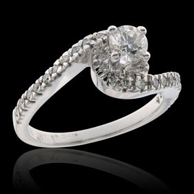 Ring 18Kt Wg & Diam.Br. H/VS1 0,39CT Center & Diam.Br. FG/VS-Si 0,01x28: 0,30CT